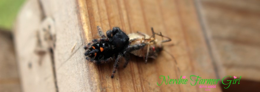 The other day the kids and I were walking out to the chicken coop to gather some eggs. When we got there I opened the back of the coop and to my surprise there was a jumping spider on the door ledge eating on a stink bug. He was very bold, didn’t budge and just… Continue reading Living Rent Free